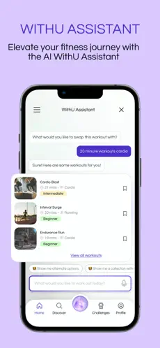 Need to swap a workout? Short on time? WithU’s AI Assistant helps you adjust on the fly, discover new sessions, and keep your plan moving forward, even on busy days.